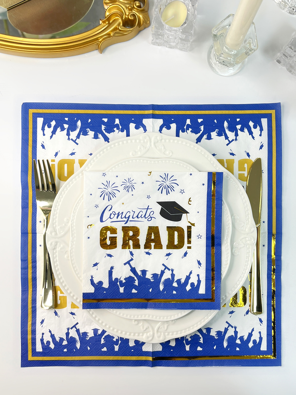 هذه المناديل الورقية المصنوعة من رقائق الذهب هي لوازم حفلات رائعة لحفلات التخرج، وسوف تضفي إشراقة على أدوات مائدة الحفلات الخاصة بك.